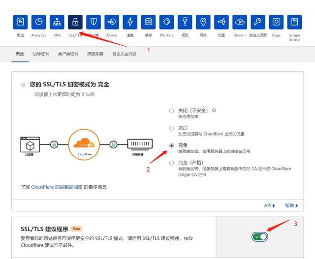 二、开启HTTPS 1、Cloudflare并进入到SSL/TLS