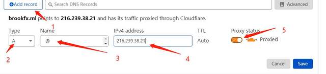 3、返回Cloudflare并进入到DNS页面并添加以下6条记录。方法如下: